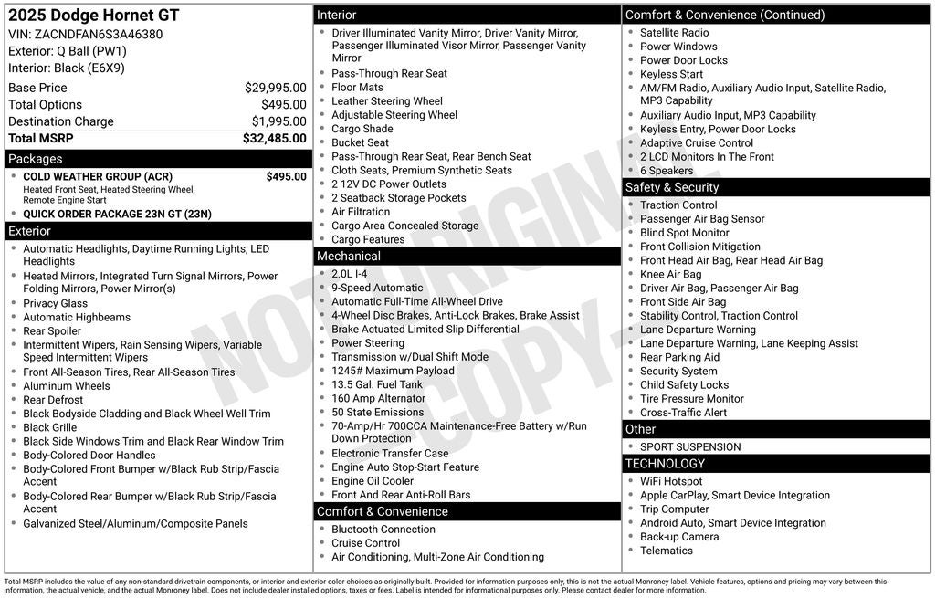 Experience the 2025 Dodge Hornet GT AWD for yourself. Schedule your test drive today and feel the performance that makes Dodge different. Price includes: Rebates may not apply to all customers and may not be stackable$1500 - 2025 National Retail Bonus Cash . Exp. 02/02/2026