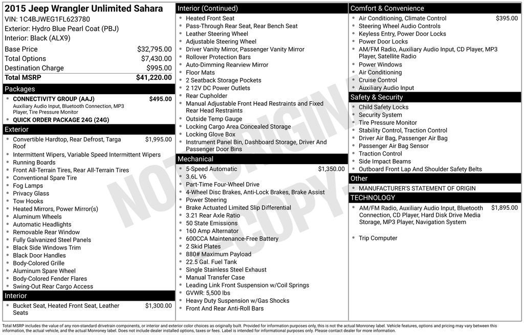 Whether you're an avid off-road enthusiast or simply seeking a versatile and capable SUV, this 2015 Jeep Wrangler Unlimited Sahara is the perfect choice. With its impressive features, rugged design, and exceptional value, it's sure to exceed your expectations. We invite you to come in and experience this remarkable vehicle for yourself. Our team of knowledgeable sales professionals is ready to answer any questions you may have and help you find the perfect Wrangler for your needs.