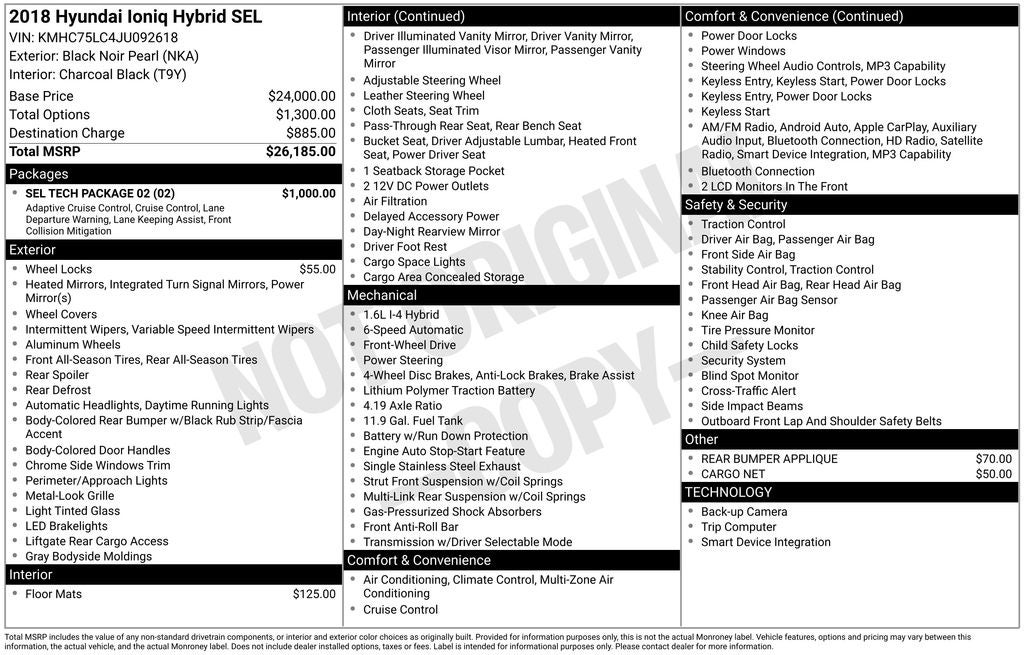 - Vehicle Name: Hyundai Ioniq Hybrid