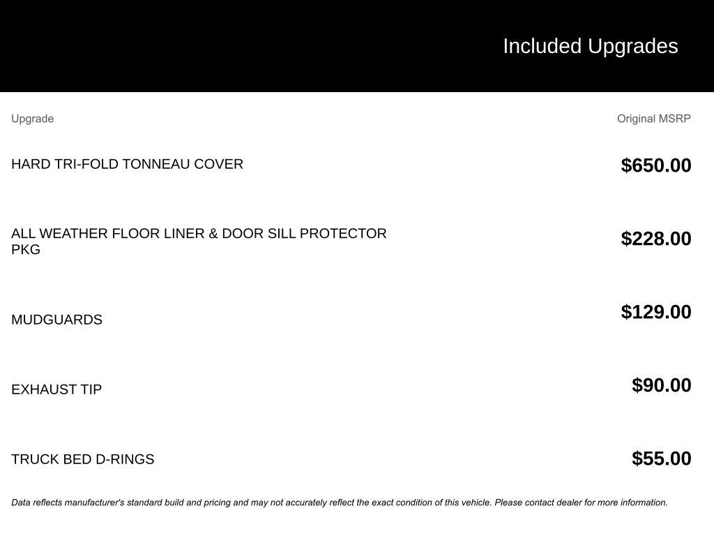 Indulge in the comfort of the Fabric Seat Trim or upgrade to the available Leather Seat Trim. The Split Folding Rear Seat and Power Sliding Rear Window with Privacy Glass offer versatility and convenience. Protect your investment with the Hard Tri-Fold Tonneau Cover and the All Weather Floor Liner & Door Sill Protector Package.
