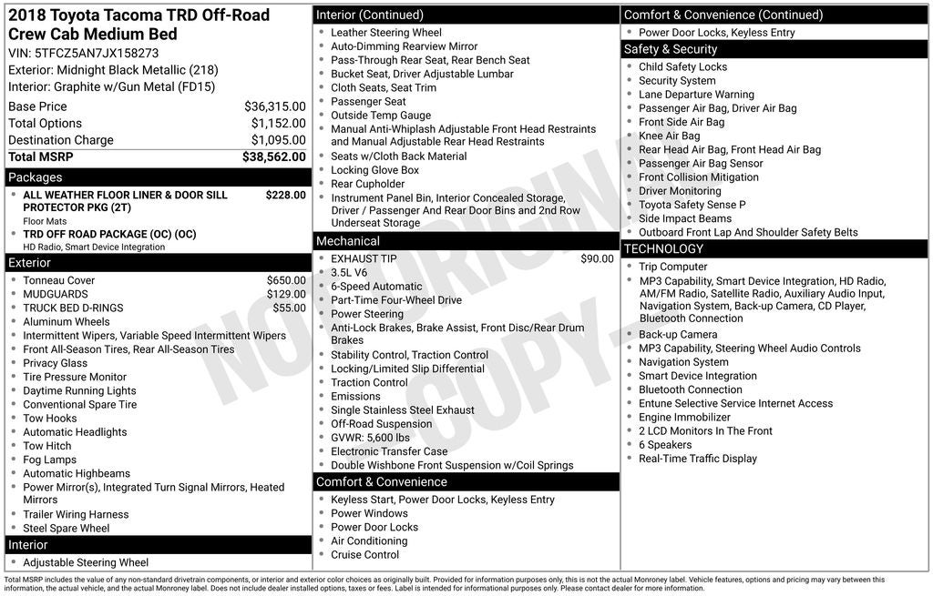 - Vehicle Name: Toyota Tacoma