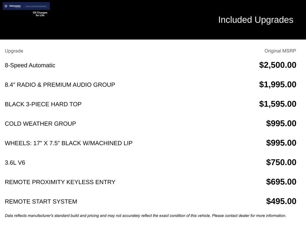 - Wheels: 17" x 7.5" Black w/Machined Lip