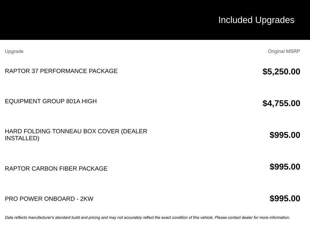 This Raptor is equipped with an impressive array of features that elevate your driving experience: