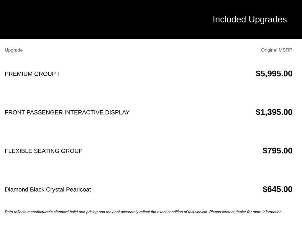 • PREMIUM GROUP I (Includes 19 Speaker McIntosh Audio System, Luxury Front & Rear Floor Mats, Reversible Carpet/Vinyl Cargo Mat, Cargo Cover, Power Deployable Running Boards, 3 Panel Sunroof, Adjustable Roof Rail Crossbars)