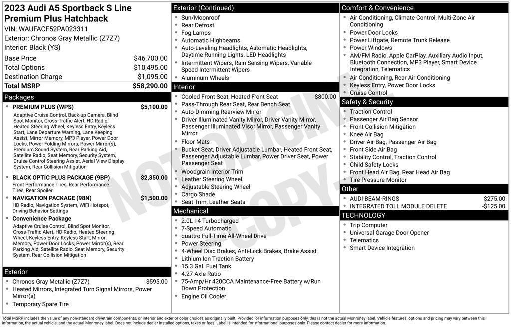 - Vehicle Name: Audi A5 Sportback