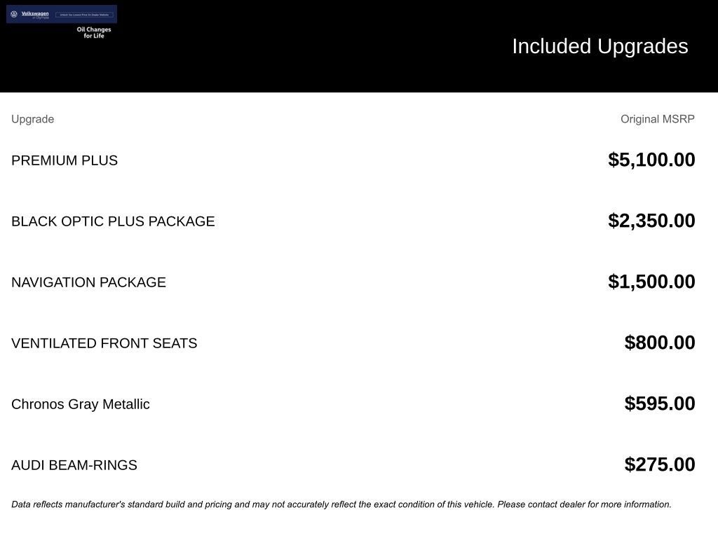 - BLACK OPTIC PLUS PACKAGE with black Audi rings and model badge, Black Exterior Trim, Black Exterior Mirror Housings, 19 Bi-Color Finish Wheels, Black Rear Lip Spoiler, Red Brake Calipers, and more