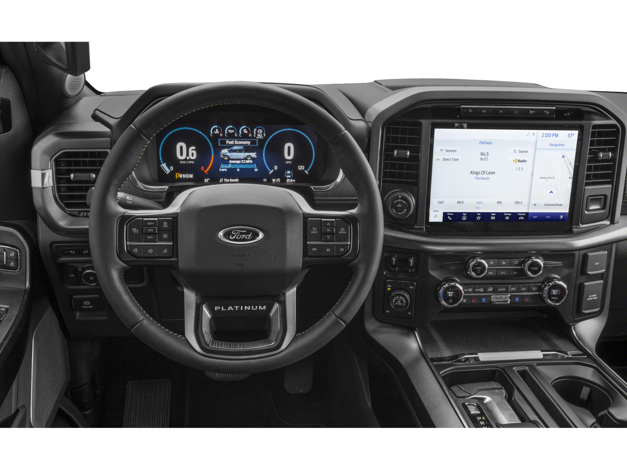 This 2023 Ford F-150 comes equipped with, 3.5L PowerBoost Full-Hybrid V6, 4WD, 20 Polished Aluminum Wheels, 360 Degree Camera, 4-Wheel Disc Brakes, 8 Speakers, ABS brakes, Active Park Assist 2.0, Active Park Assist 2.0 Removal, Adjustable pedals, Air Conditioning, Alloy wheels, AM/FM radio: SiriusXM with 360L, Auto High-beam Headlights, Auto Start-Stop Removal (DISC), Auto tilt-away steering wheel, Auto-dimming door mirrors, Auto-dimming Rear-View mirror, Automatic temperature control, Bed Utility Package, BoxLink, Brake assist, Bumpers: body-color, Class IV Trailer Hitch Receiver, Compass, Delay-off headlights, Driver door bin, Driver vanity mirror, Dual front impact airbags, Dual front side impact airbags, Electronic Stability Control, Emergency communication system: SYNC 4 911 Assist, Equipment Group 701A High, Exterior Parking Camera Rear, Ford BlueCruise 1.0, Front anti-roll bar, Front Bucket Seats, Front Center Armrest, Front dual zone A/C, Front fog lights, Front reading lights, Front wheel independent suspension, Fully automatic headlights, Garage door transmitter, Heated door mirrors, Heated front seats, Heated rear seats, Heated steering wheel, Illuminated entry, Inclination/Intrusion Sensor Removal, Integrated Trailer Brake Controller, Interior Work Surface, LED Box Lighting, LED Sideview Mirror Spotlights, Low tire pressure warning, Memory seat, Multicontour Seats w/Active Motion Removal, Occupant sensing airbag, Outside temperature display, Overhead airbag, Overhead console, Panic alarm, Passenger door bin, Passenger vanity mirror, Pedal memory, Power door mirrors, Power driver seat, Power passenger seat, Power steering, Power Tailgate, Power windows, Pro Power Onboard - 7.2KW, Pro Trailer Backup Assist & Pro Trailer Hitch Assist, Radio data system, Radio: B&O Sound System by Bang & Olufsen, Radio: B&O Unleashed Sound System by Bang & Olufsen, Rain sensing wipers, Rear reading lights, Rear seat center armrest, Rear step bumper, Rear window defroster, Remote keyless entry, Security system, Speed control, Speed-sensing steering, Split folding rear seat, Steering Wheel Heat Removal (DISC), Steering wheel memory, Steering wheel mounted audio controls, SYNC 4 w/Enhanced Voice Recognition, Tachometer, Tailgate Step w/Tailgate Work Surface, Telescoping steering wheel, Tilt steering wheel, Traction control, Trailer Tow Package, Trip computer, Turn signal indicator mirrors, Twin Panel Moonroof, Unique Multi-Contour Leather Bucket Seats, Variably intermittent wipers, Ventilated front seats, Voltmeter, 3.5L PowerBoost Full-Hybrid V6, 4WD. Clean CARFAX. Avalanche Gray 2023 Ford F-150 Platinum 4WD 10-Speed Automatic 3.5L PowerBoost Full-Hybrid V6