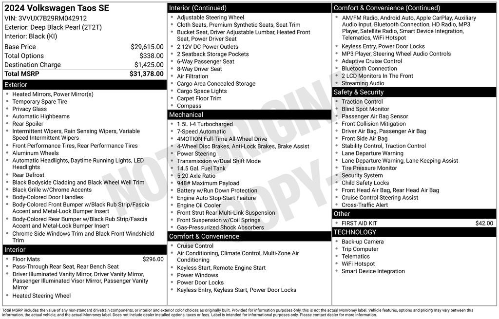 - Vehicle Name: Volkswagen Taos